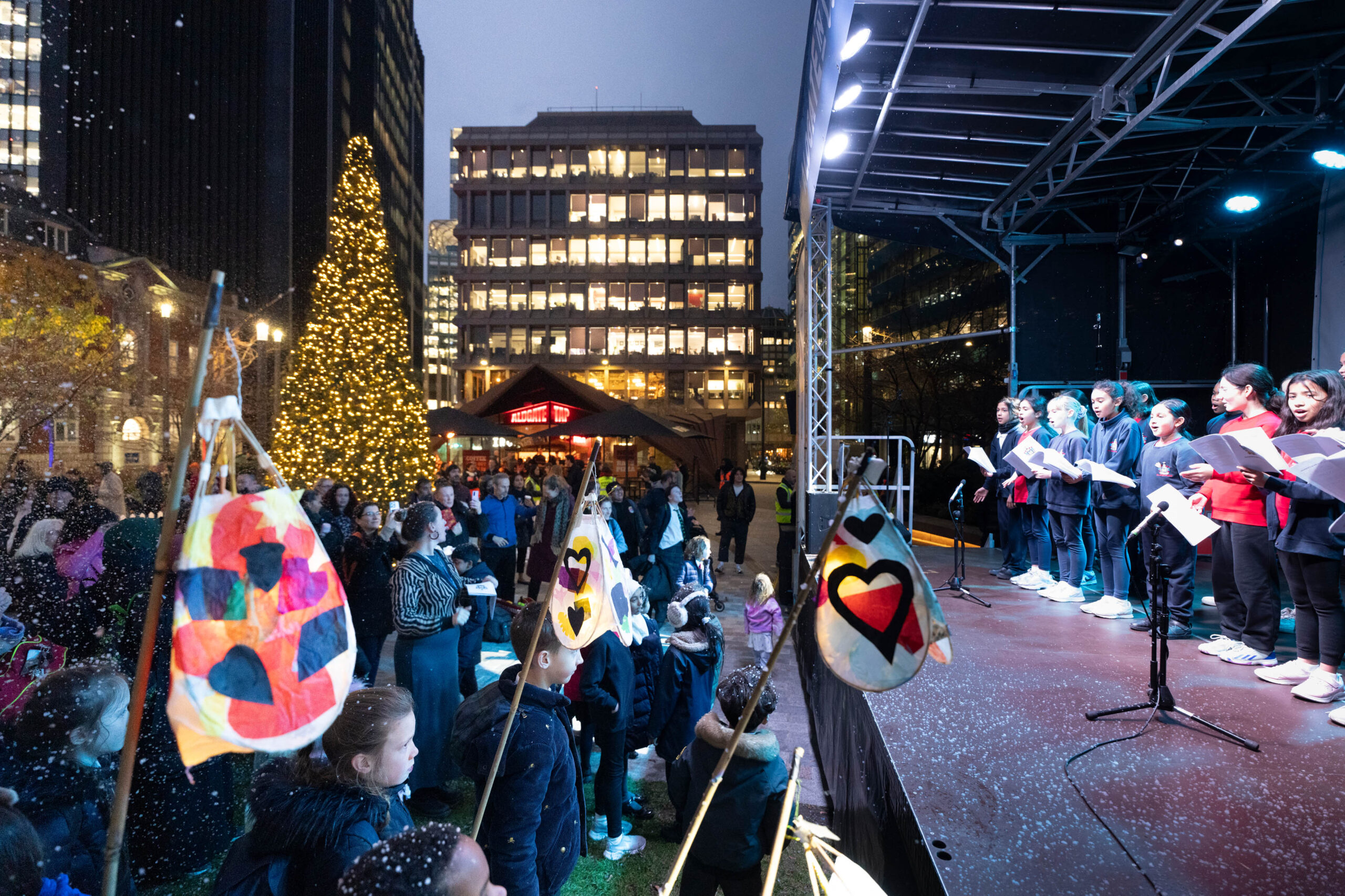 Friday 5th December remains the Main Event Day for the festival, bringing together live performances on The Aldgate Stage, creative workshops, the iconic Lantern Parade through the streets of Aldgate from 5:00pm, a warming free community feast from 6:00pm (kindly sponsored by Howden Group), and more.