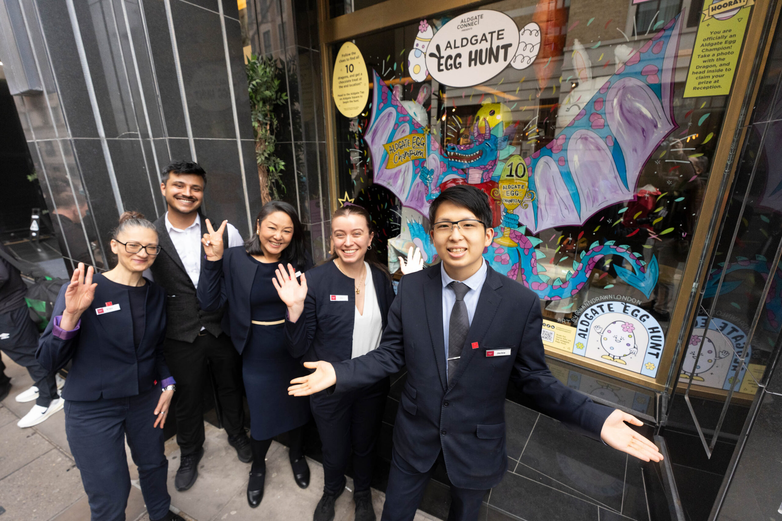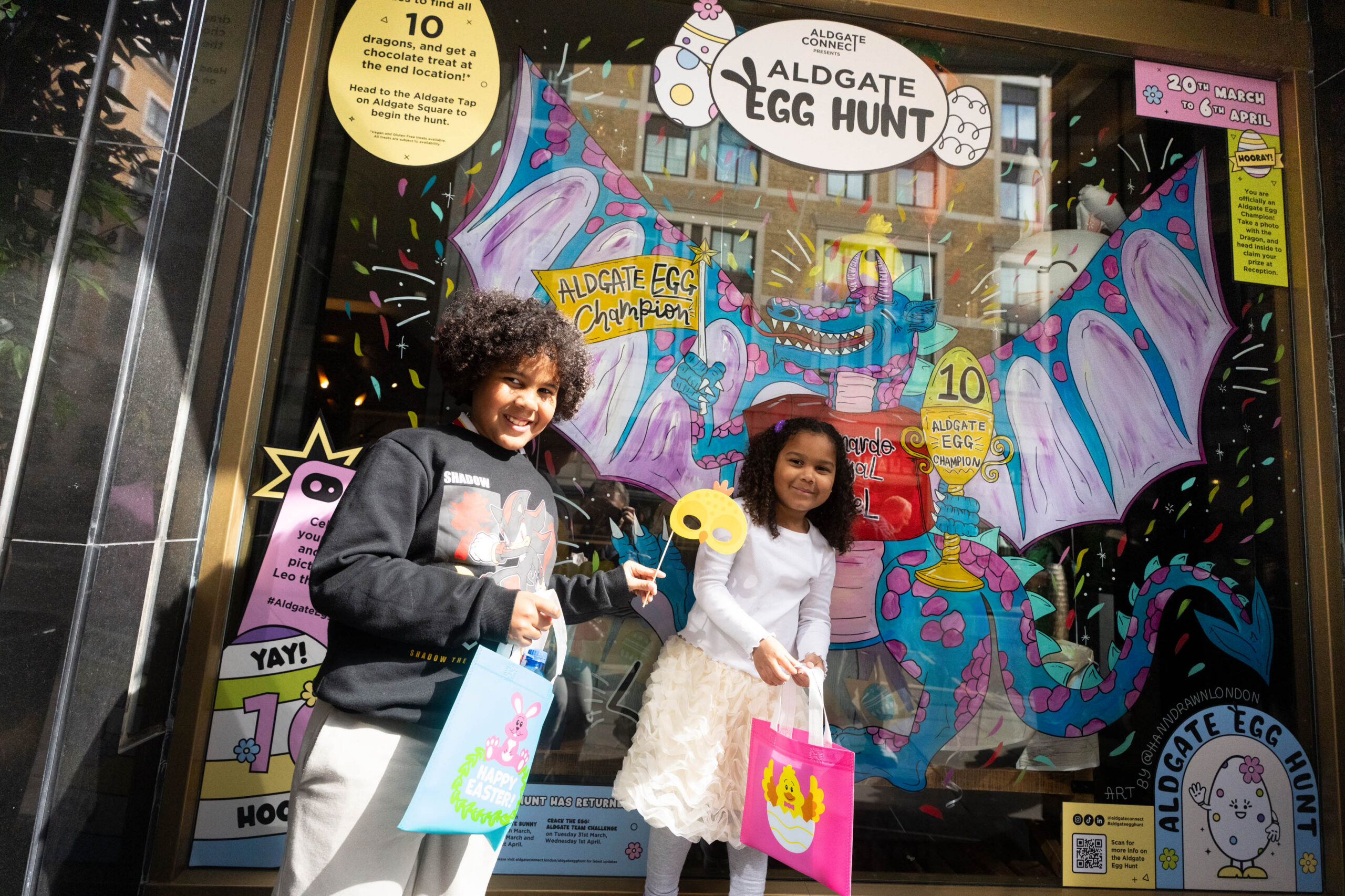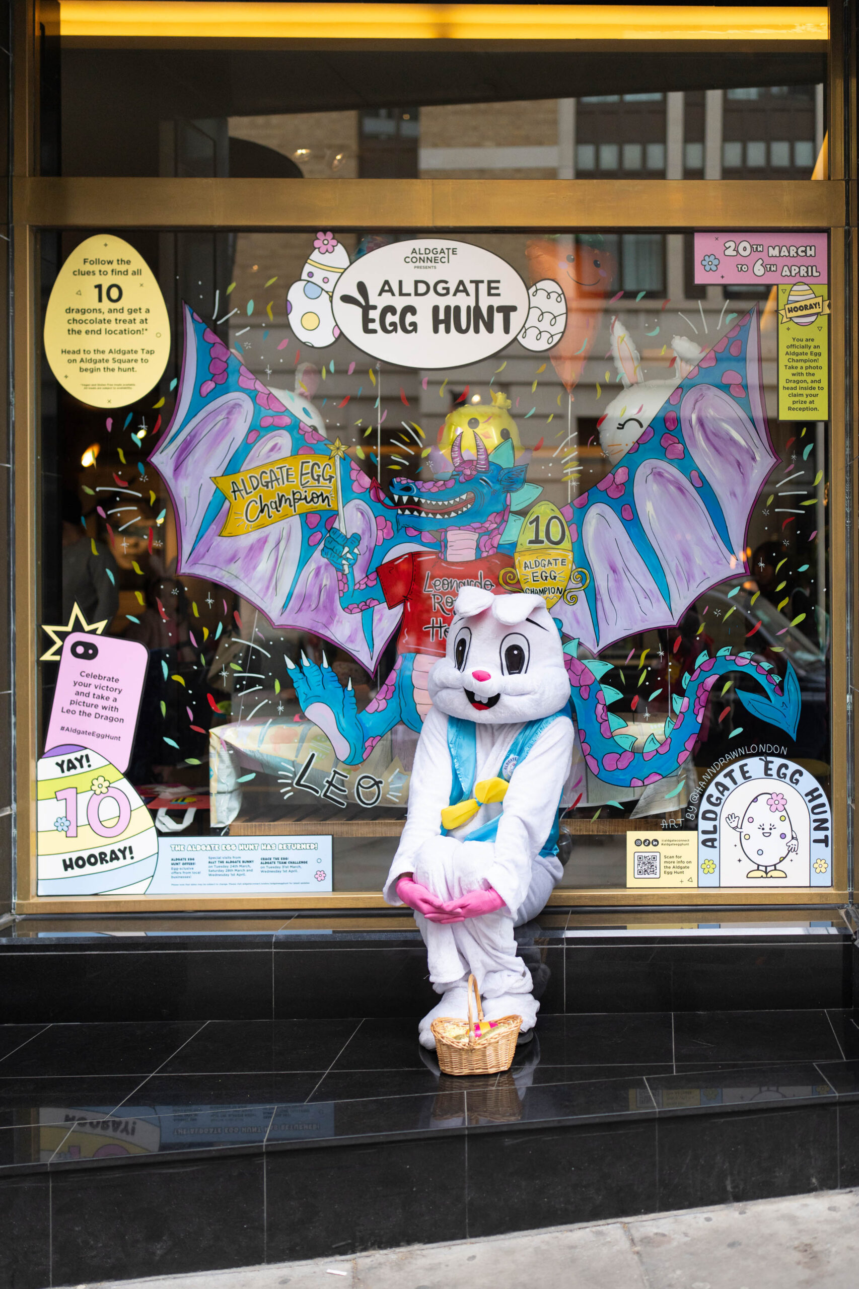 This year’s Aldgate Egg Hunt too place across 20th March – 6th April and saw 10 incredible hand-painted artworks appear in the windows of local Aldgate businesses. This year’s theme for the artwork was Dragons, giving a nod to the City of London Dragons that mark the boundary of the City, which runs across the centre of Aldgate.